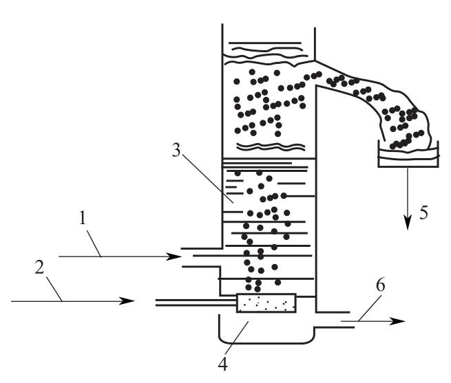 曝氣氣浮一般采用鼓風機將空氣直接送至氣浮池充氣器,形成細小氣泡進入污水中。充氣器一般用擴散板、穿孔板或微孔管等,曝氣壓力在1kg/cm2,空氣量2-3m3/m3水。擴散裝置的微孔不宜過小,否則易于堵塞;而微孔板孔徑過大,必須投加表面活性劑,方可形成可利用的微小氣泡,從而導致該種方法使用受到限制。近年研制、開發的彈性膜微孔曝氣器克服了擴散裝置微孔易堵或孔徑大等缺點。擴散板曝氣氣浮示意圖見下圖。