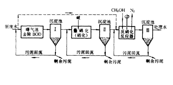 藻類生長的限制因素是水體的氮和磷含量。一般認為,水體中總磷達到0.02mg/L、無機氮達到0.3mg/L以上時,藻類就會過度生長,出現富營養化。在好氧生物處理中,生活污水經生物降解,大部分的可溶性含碳有機物被去除。其中有25%的氮和19%左右的磷被微生物吸收合成細胞,通過排泥得到去除,但出水中的氮和磷含量仍未達到排放標準。為了防止水體富營養化,對廢水還必須進行脫氮除磷處理。