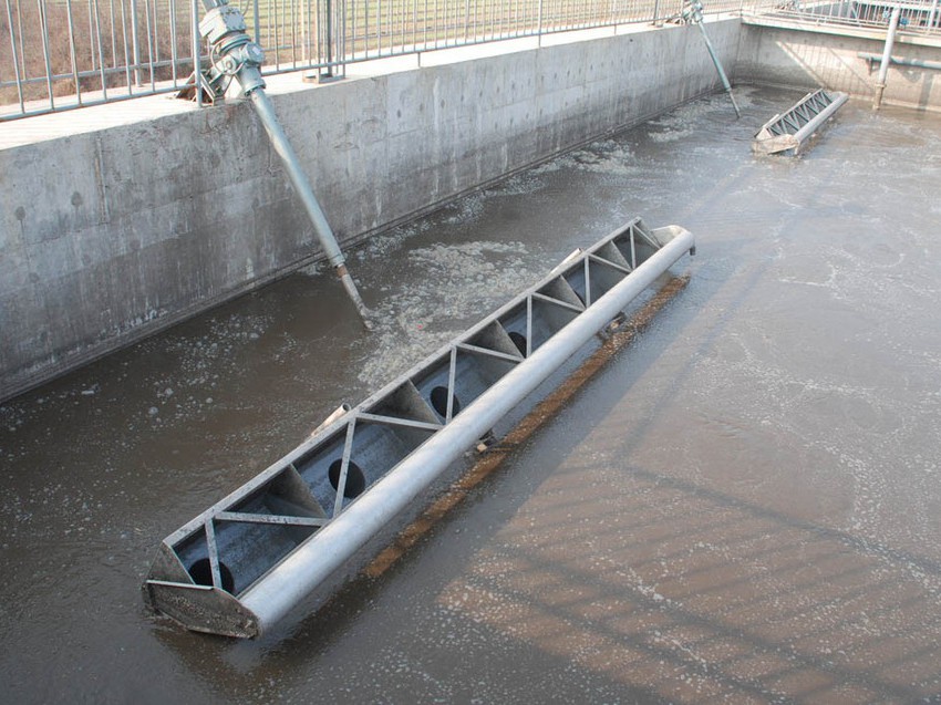 潷水器是間歇式活性污泥法處理污水的必配機械裝置。間歇式活性污泥法的污水處理機制與普通活性污泥法相同,其區別在于原污水不是順次流經各個處理單元而是放流到單一反應池內,按時間順序實現不同目的的操作,其基本操作程序由進水、反應、沉淀、出水和待機等五個基本過程組成。從污水流入開始到待機時間結束為一個周期。潷水器通過電控柜內的時間繼電器和螺旋推進裝置內的引程開關,實現定時、定量排放達標處理水,從而使SBR池實現連續處理污水的最終目的。
